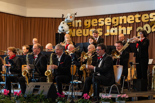Spätestens mit diesem Stück und dem anschließenden geistlichen Impuls für das neue Jahr durch Schlagzeuger Thomas wurde klar, dass die Musikerinnen und Musiker das Publikum musikalisch verwöhnen wollten und zwar motiviert und mit großer Freude und Lust.