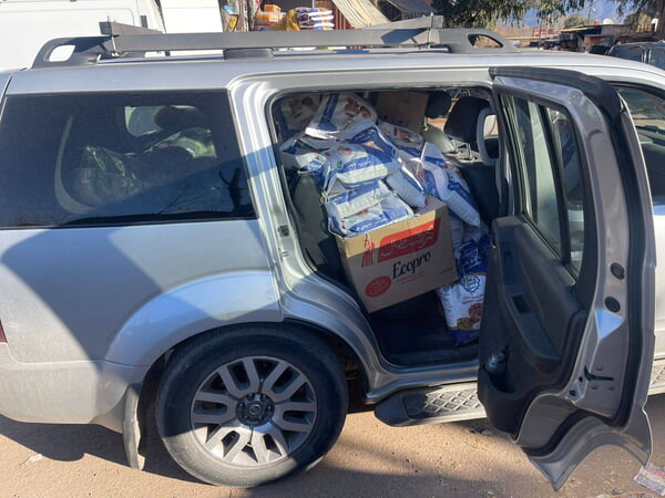 Und jetzt, Anfang Februar ging die Hilfsaktion endlich los. Eine Berberin, die für eine Nichtregierungsorganisation arbeitet, hatte um Hilfe für das Dorf Ijoukak gebeten. Dieses ca. 100 km südwestlich von Marrakesch liegende Dorf befindet sich recht nah am Epizentrum und wurde daher stark vom Erdbeben zerstört. Noch immer sind die Menschen dort unentwegt dabei, ihre Häuser wieder aufzubauen und gleichzeitig fehlt es noch immer am Nötigsten. Mit Hilfe des hier in Schalksmühle gesammelten Geldes machten sich zwei in Marokko lebende deutsche Familien auf den Weg, um Hilfslieferungen nach Ijoukak zu bringen. Da die Berberin im Vorfeld eine Liste übermittelt hatte, was genau benötigt wird, konnte den insgesamt 60 Familien in Ijoukak wirklich ganz zielgerichtet geholfen werden. Und das mit für uns so alltäglichen Dingen wie Linsen, Tee oder Tomatenmark. Und trotzdem zeigte sich selbst hier wieder die herzliche Gastfreundlichkeit der Berber, die auch wir erleben durften, denn zum Dank wurden die Helfer abends von der Dorfgemeinschaft bekocht.